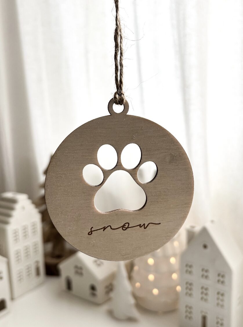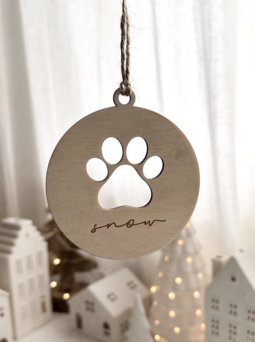 Les inscriptions sont gravées au laser, et l’emprunte est en découpée dans le bois . Sa personnalisation unique apportera une touche original sur votre sapin.