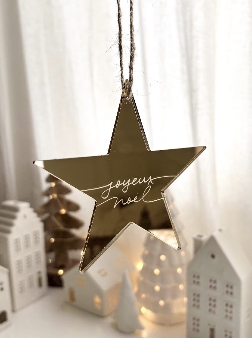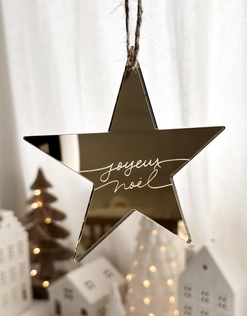 Boule de Noël en forme d’étoile en miroir doré.