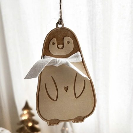 Cette décoration de Noël est en bois de bouleau, gravé au laser et découpé au laser. Le noeud est en option.