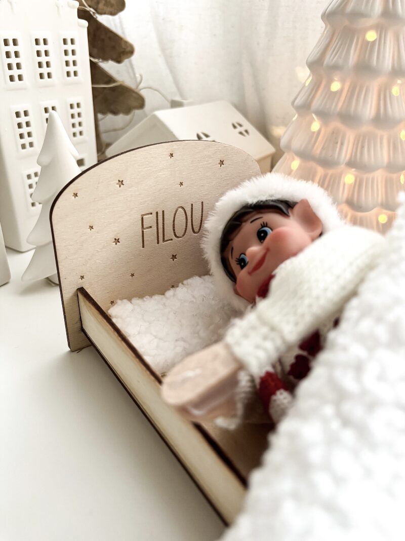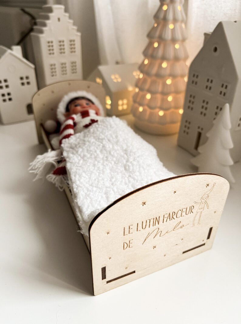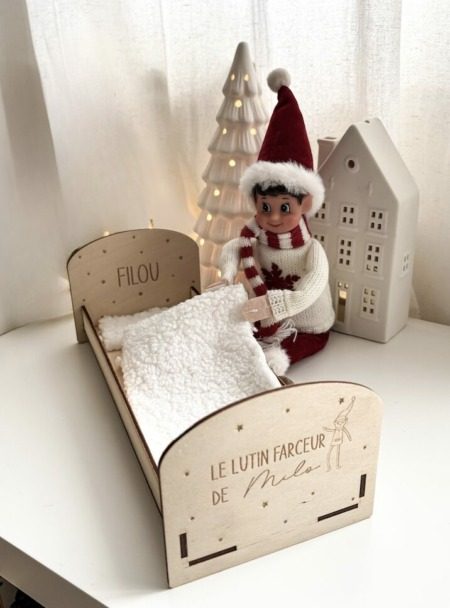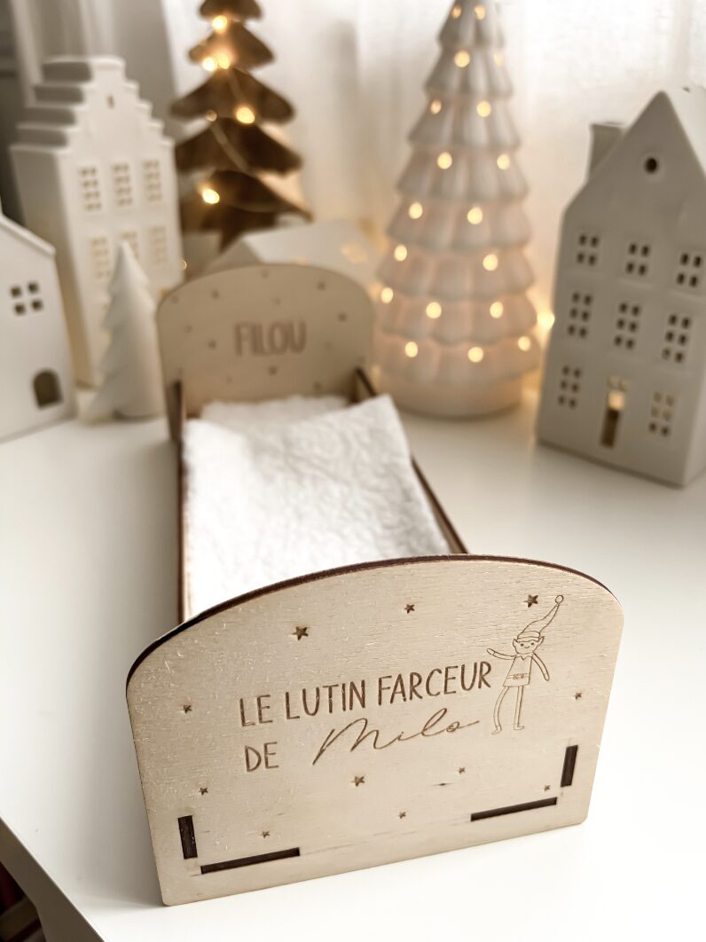 Lit en bois pour lutin farceur à personnaliser. Un must have pour tous les amateurs de la tradition des lutins farceurs!