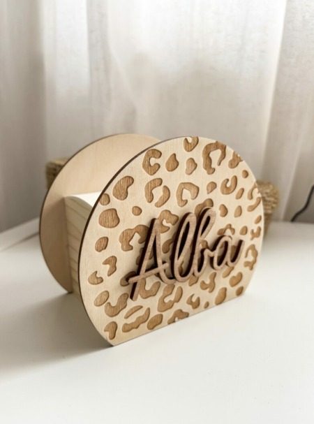 La personnalisation rend la tirelire unique, elle est gravée dans le bois.
