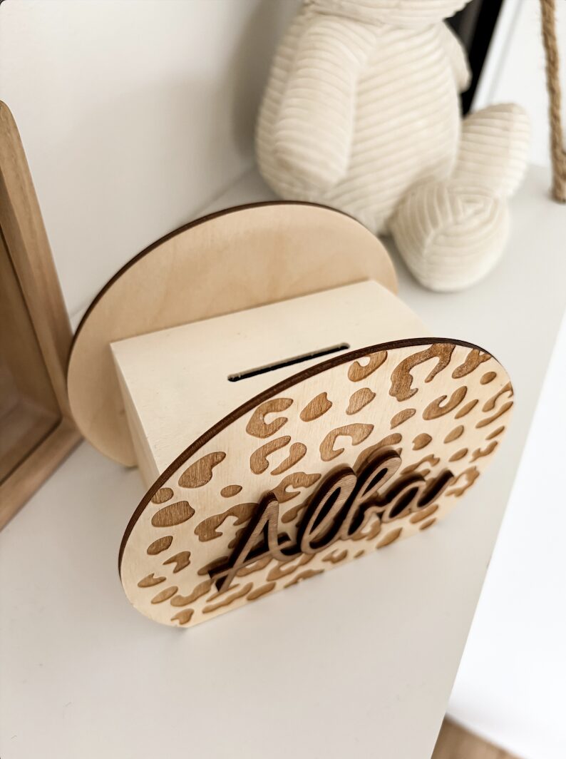 Cette magnifique tirelire enfant personnalisée en bois allie praticité et décoration pour la chambre de nos loulous !